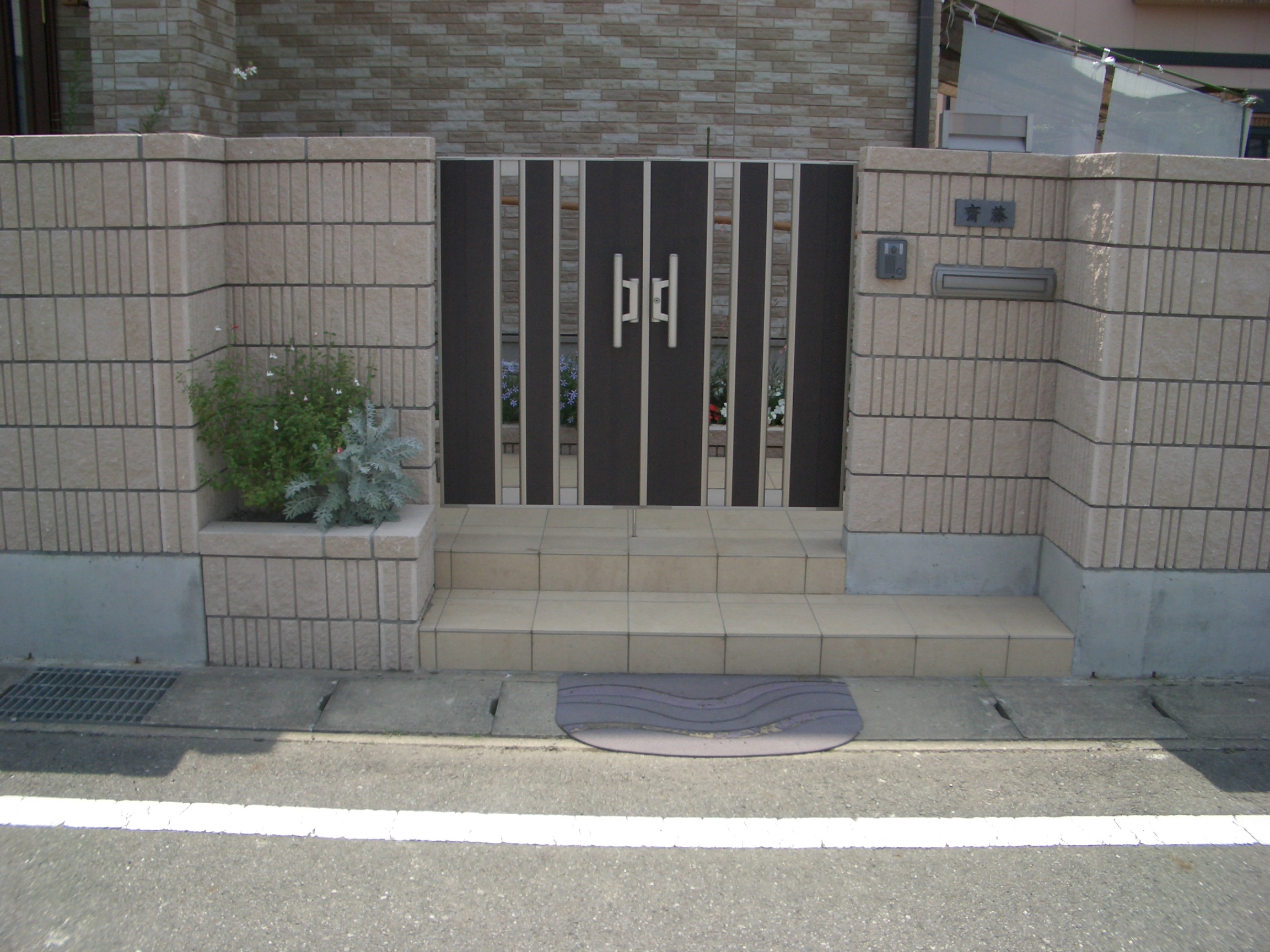 タイル張り門柱